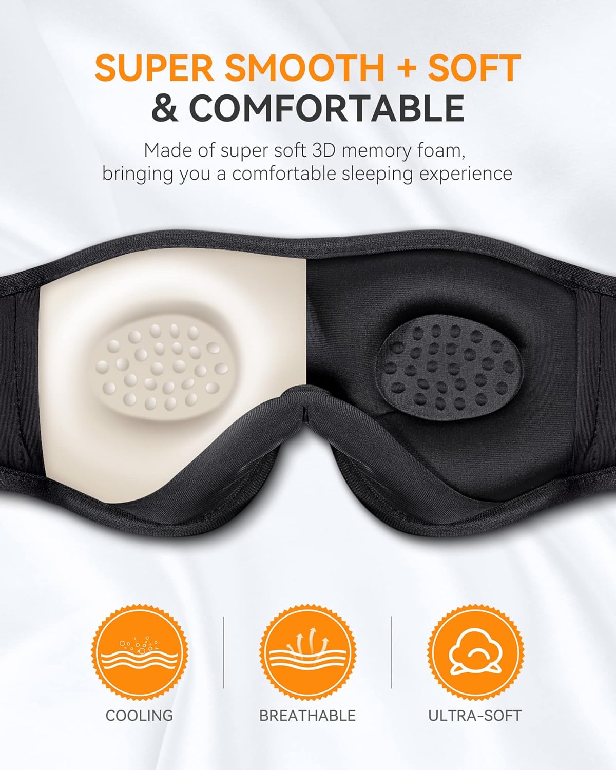 The contour of the eye area is deeper and your eyes can move freely without any pressure on the eyes. The new Sleep 3D Eye Mask brings you comfortable and long-lasting sleep.