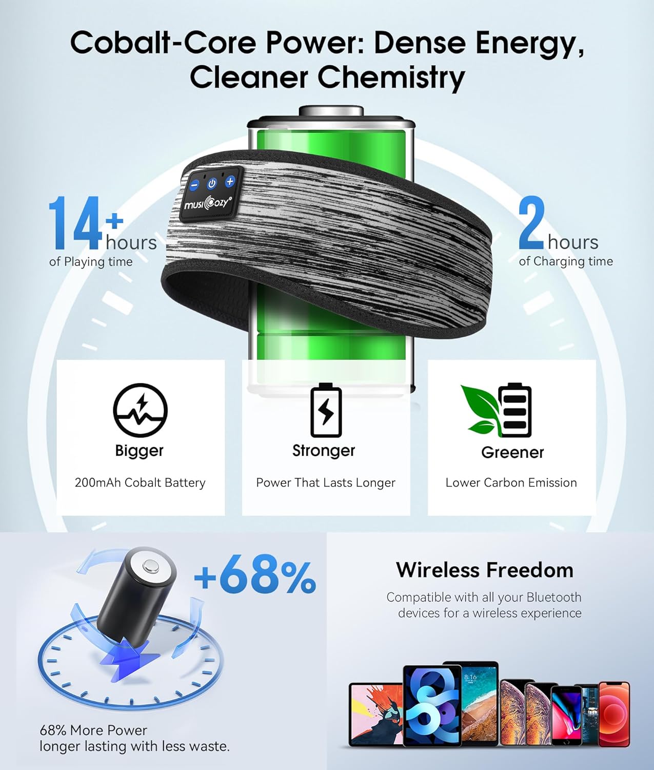 MUSICOZY Bluetooth 5.2 Sleep Headphones, Wireless Headband Headphones with HD Stereo Speakers, Sports Earphones for Sleeping, Running, Yoga, Ideal Gifts for Men, Women, Teens