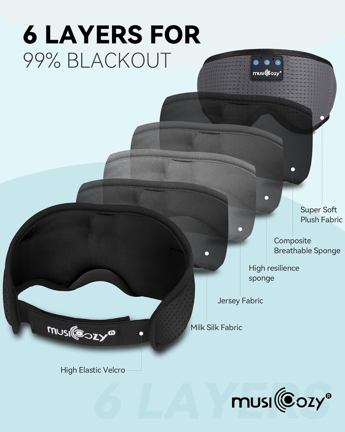The Bluetooth sleep mask is made of premium memory foam with smooth ice silk lining. Lightweight and Skin-friendly, breathable cool fabric let you release your facial stress and help you get into sleep rapidly.