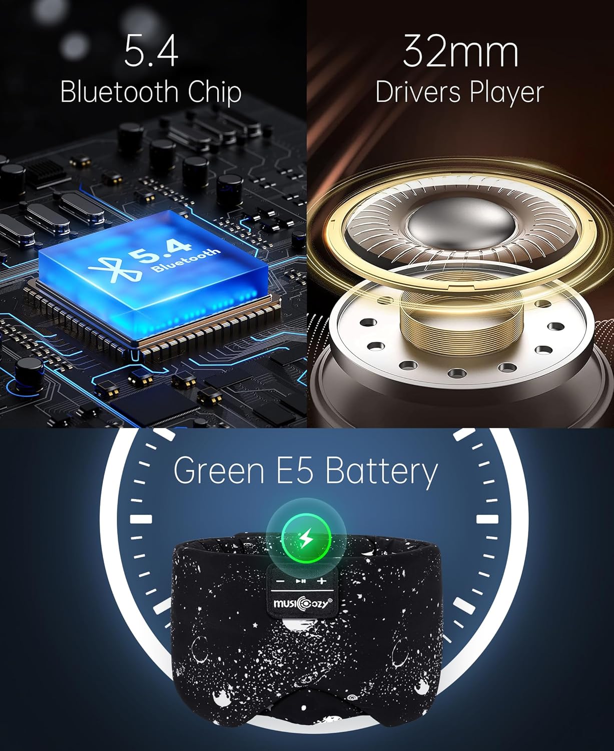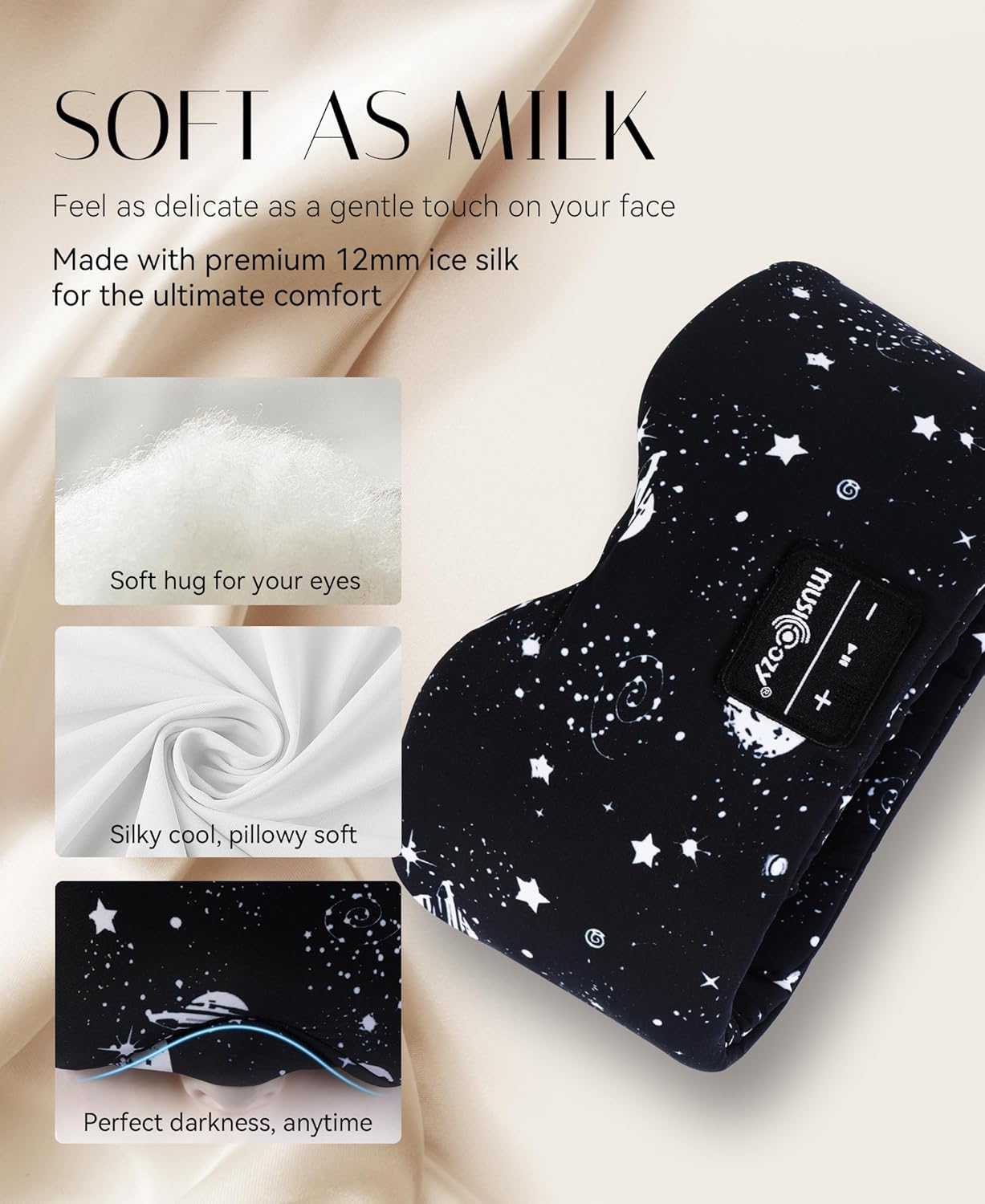 MUSICOZY Sleep Headphones Bluetooth Sleep Mask with Headphones Eye Mask Wireless Bluetooth 5.4 with Adjustable Headband Total Blackout for All Night Sleep, Travel & Nap