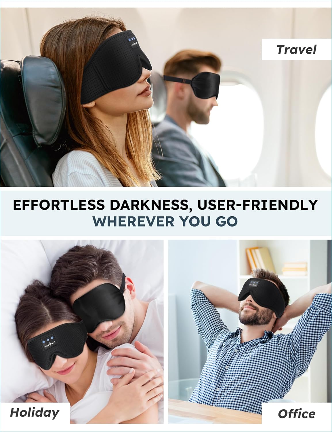 MUSICOZY Sleep Headphones Wireless Mask 3D Sleeping Eye Mask, Music Headband Headphones Sleep Earbuds Earphones for Side Sleeper Sleep Silk Eye Mask Cool Gadget Holiday for Mom Women(Black+Black)