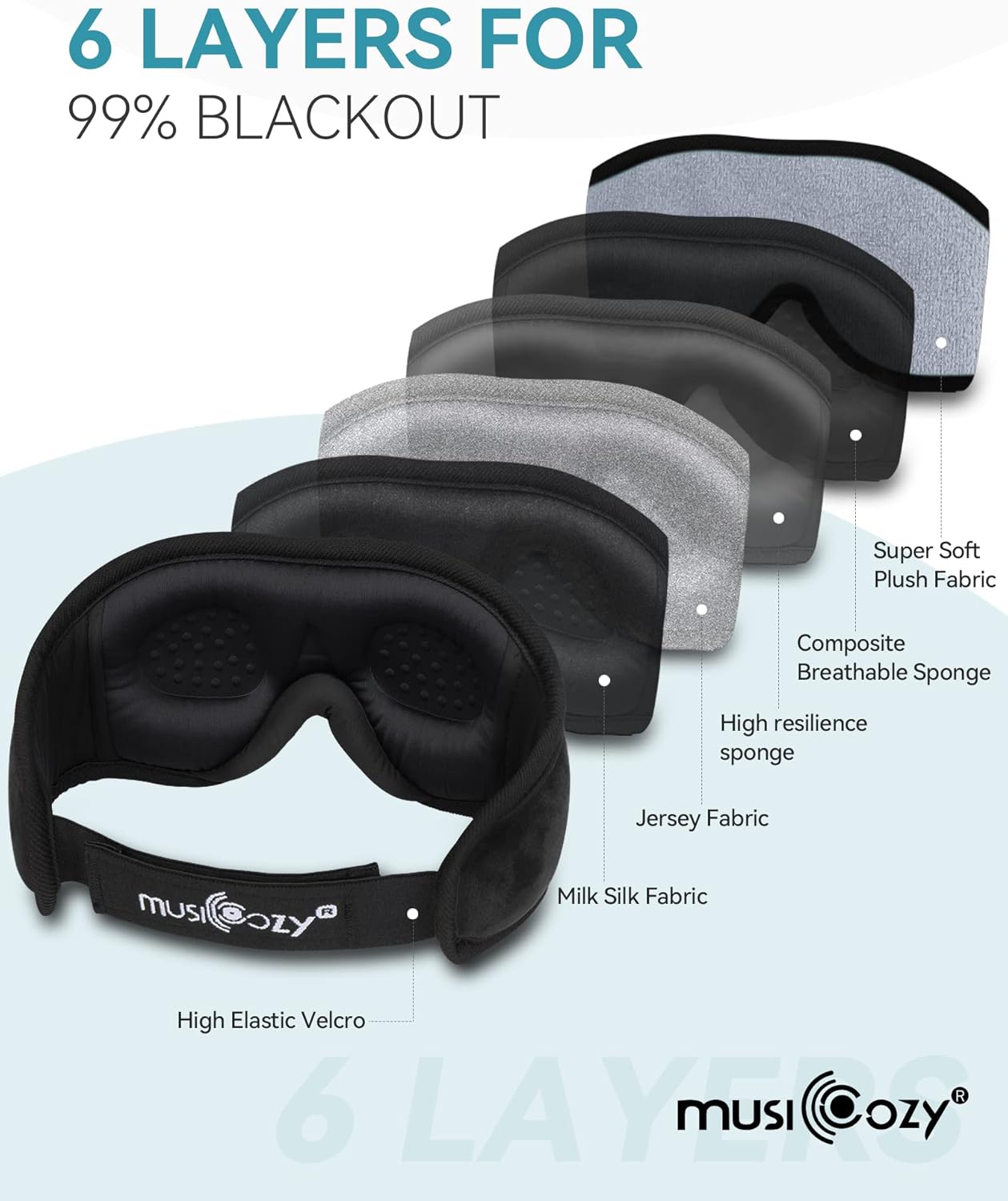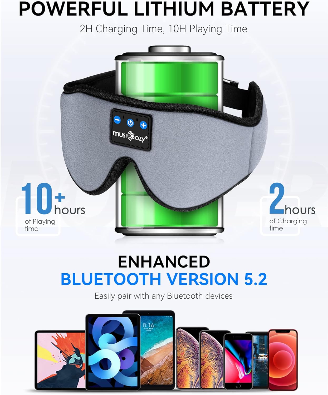 MUSICOZY Wireless Bluetooth 5.2 Sleep Headphones Headband, Music 3D Eye Sleeping Mask Earbuds Built-in Speakers for Side Sleepers Cool Tech Gadgets Unique Gifts, Gray